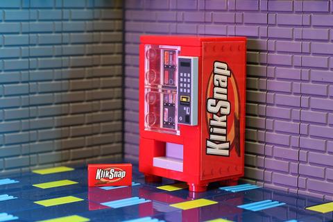 A candy bar vending machine is the perfect addition to your LEGO city displays. Perfect size for your minifigures. Includes instructions and 35 new authentic LEGO bricks for building the vending machine. Includes a custom printed Klik Snap candy LEGO tile. Dimensions: 2.125" high x 1.5" wide x 1.125" deep